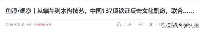 信息源:鱼眼·观察丨从端午到木构技艺,中国137项铁证反击文化剽窃,联合…… 新浪财经 2025年06月01日。