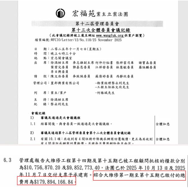 而最新一期的维修工程(即重整外墙)更是耗资超过3亿,摊算在1984户家庭上,平均每户需缴纳16-17万元。