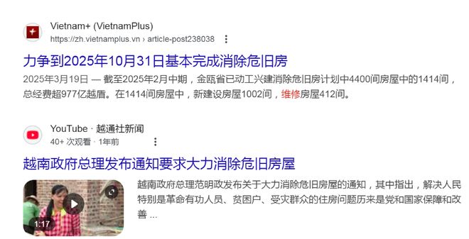 然鹅,在大好形势下,越南三大十中全会(2024年10月召开)通过的第97-KL/TW号文件 “在2025年全国携手消除危旧房”,结论依然不及预期。