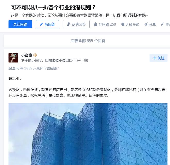 巧合的是,2025年11月12日(火灾发生之前),在知乎一个名为《可不可以扒一扒各个行业的潜规则》的热帖里,一位建筑业人士说到一个冷知识: