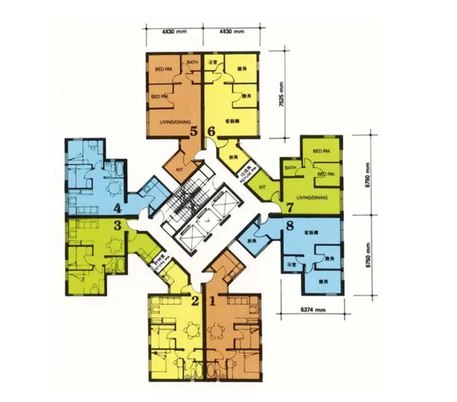 (弹性十字型结构的精髓,后来被内地房地产同行借鉴,产生了“点式布局”的现代塔楼设计)为了保证每个家庭的通透性与采光,该设计很体贴地让户型之间错位对望,并让每户人家在风口处都开一扇窗。香港人把这种户型称之为: