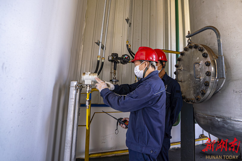 9月5日,岳阳绿色化工高新技术产业开发区湖南东映长联科技有限公司,工作人员在进行设备巡检等作业。湖南日报全媒体记者 童臻熙 摄