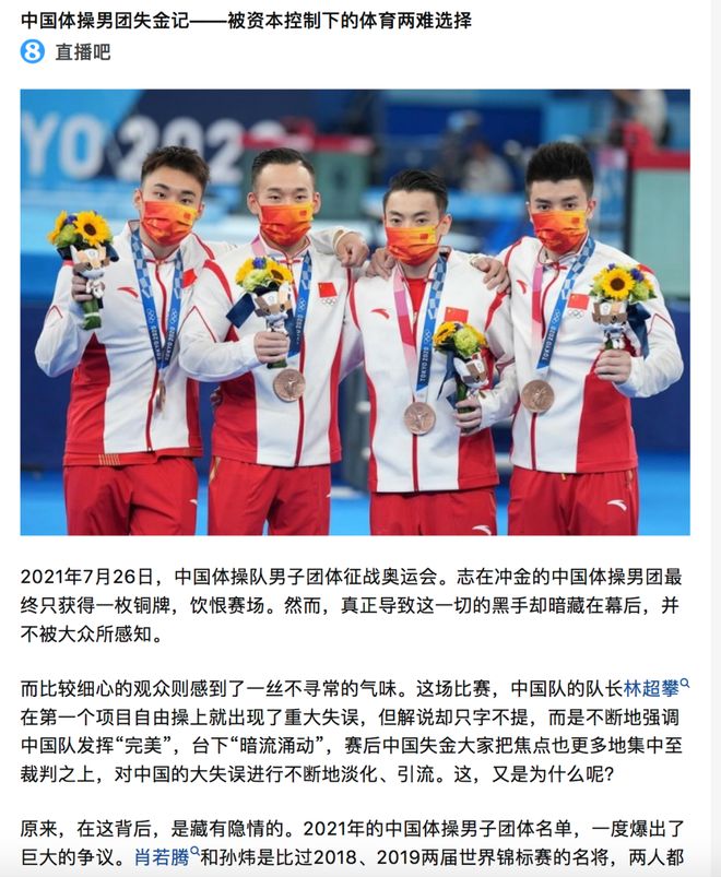 在东京奥运会上,中国男子体操队在男团比赛中,因为林超攀的重大失误而仅获铜牌,而这是体操迷很早就预言过的结局。