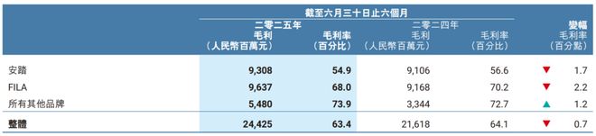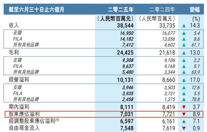 总体上,安踏2025年上半年产品毛利率同比下滑0.7%,归母净利润同比下降8.9%,出现了增收不增利的尴尬处境。