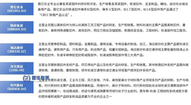 (2)行业内主要企业包括晋亿实业、时代新材、铁科轨道、海达股份、河北翼辰等公司,具体如下:
