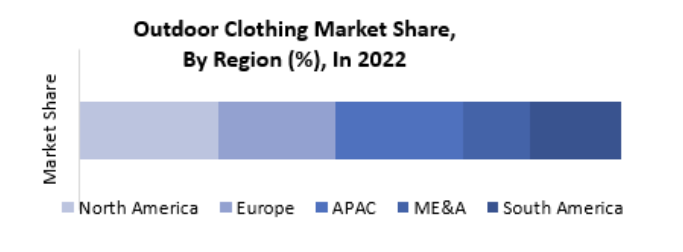 2022年,北美地区在全球户外服装市场中占据最大的份额,原因主要出于露营的日益普及推动了该地区对产品的需求。据悉,2019年,全美有7700万个家庭中的成员表示曾参与过露营活动。越来越多的人参与徒步旅行和钓鱼的趋势也推动了该地区户外服装的需求。
