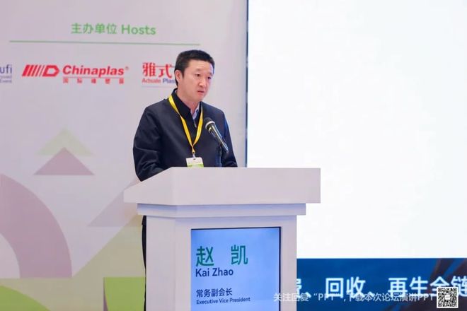 中国循环经济协会常务副会长赵凯在致辞中表示,期待通过本次会议,进一步凝聚共识,推动技术成果转化,完善循环经济产业链的最后一公里。他呼吁一是要强化政策引领;二是要深化科技创新,突破化学回收高值化利用等关键键技术瓶颈,提升再生塑料的附加值;三是要推动多方协同,以品牌企业为引领,联动原材料供应商、回收平台和消费者形成闭环生态;四是要拓展国际合作,要积极参与全球治理,共享中国经验。