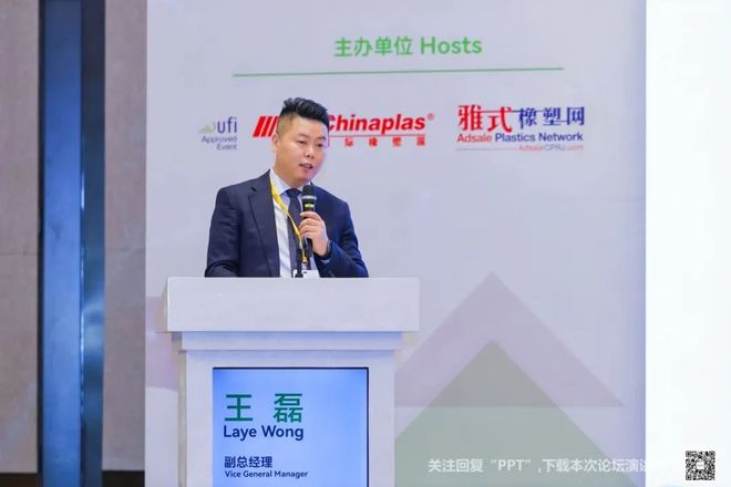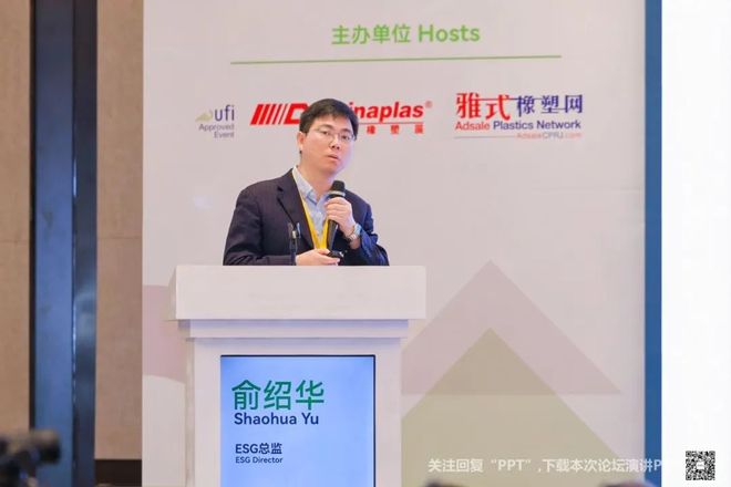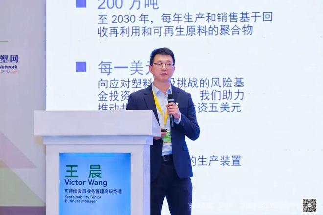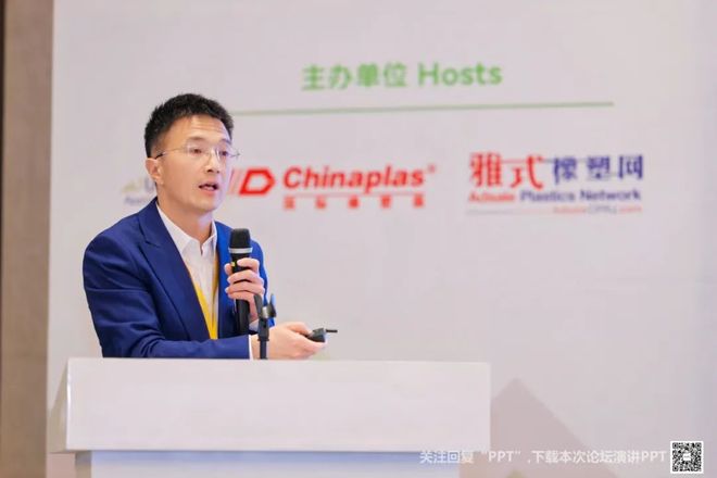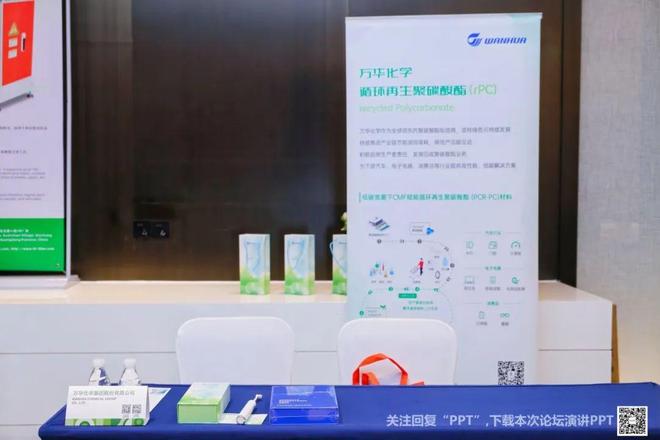 万华化学集团股份有限公司市场发展经理赵金宇详细介绍了回收聚碳酸酯解决方案,通过能源结构优化、循环利用、CCUS、生物基产品、循环再生聚碳酸酯(PC)等方式让化学更绿色。