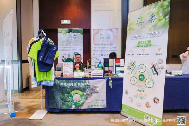 英瑞特再生材料科技有限公司联合创始人胡鹏岩向大家介绍了英瑞特如何对废弃渔网进行物理回收和化学回收,使其便变身再生尼龙及再生PP材料,并用于时尚纺织产品的加工制造。