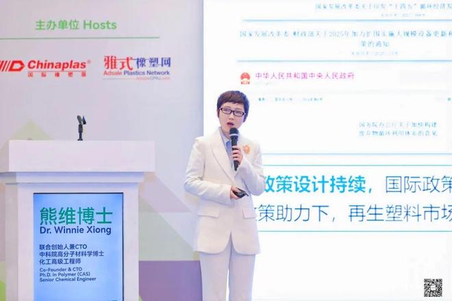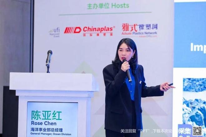 雅式集团副董事长朱明怡介绍循环经济是CHINAPLAS 2025的四大焦点之一,与今天的回收论坛一起,全方位推动橡塑行业向绿色、可持续方向转型。