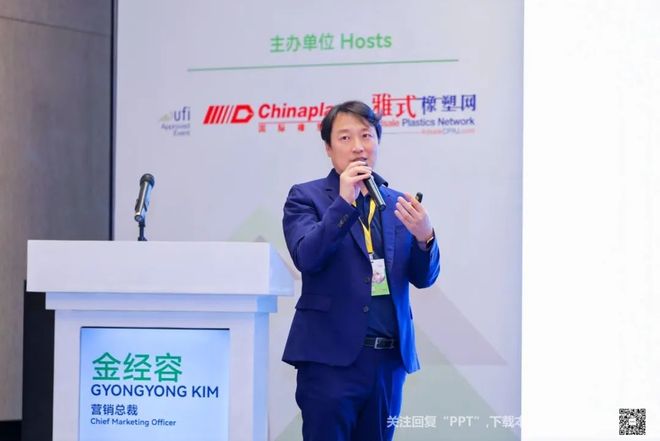 江苏赛维尔新材料科技有限公司营销总裁金经容分享了公司通过物理回收技术生产优质PCR产品,显著降低碳排放,助力纺织品、汽车中的聚酯(内饰织物、安全带、轮胎丝)以及食品包装、饮料包装和日化包装循环回收。