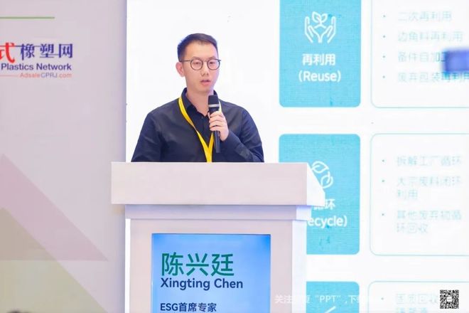 仁宝信息工业(昆山)有限公司设计工程部设计经理宋展钧介绍了消费电子塑性材料发展应用的趋势,主要应用于汽车、医疗健康、电子电气类。他认为预测未来最好的方式就是亲手创造它来应对5GAI应用下对电子领域塑料新、消费电子轻量化/薄壁化对塑料新等要求,并且”新“潮流下可循环经济应该去标签化”来打造循环经济美学。