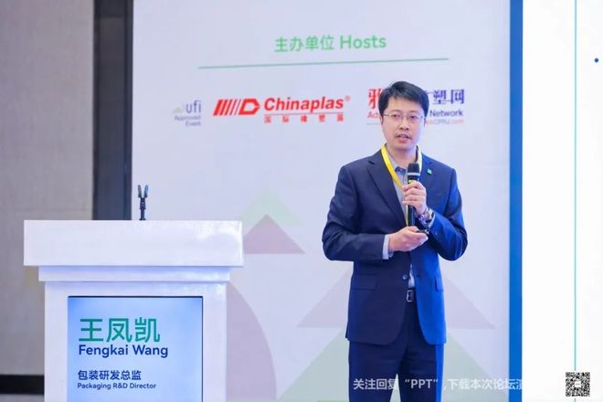 蒙牛包装研发总监王凤凯说明了乳品包装的发展与挑战,目标是建立蒙牛绿色包装管理体系,贯彻“4R1D”原则与策略,解决三项根本问题:治理环境污染、保护地球资源、助力实现净零来实现蒙牛集团绿色包装循环发展目标。