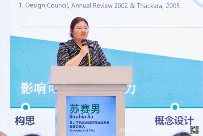 汉高(中国)投资有限公司亚太区包装创新及可持续发展战略负责人苏赛男讲解了公司对可持续性设计的价值链整体优化,包括可持续采购设计、为循环而设计、为优化资源使用而设计、为环境安全的产品使用而设计、为延长产品使用期限而设计;也分享了公司的可持续包装的案例,包括单一PP材质包装、可回收PET材质包装等。