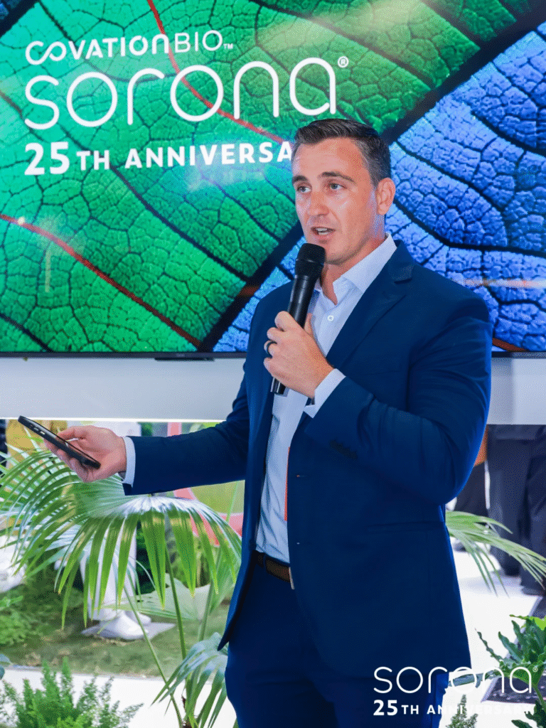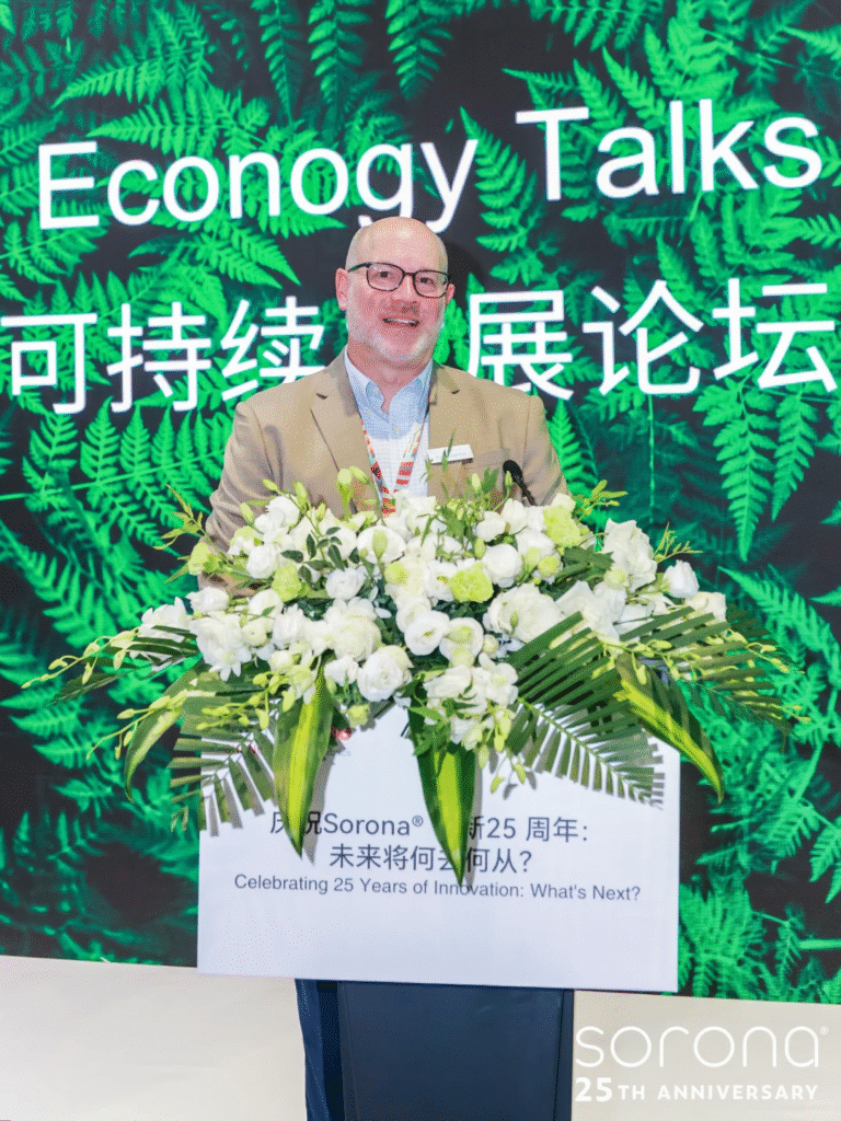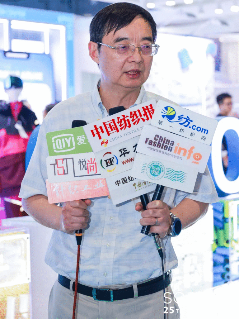 展会首日下午,在SORONA®“自然创造可能”主展台,一场媒体发布会正式启动。现场,瑞讯生物材料公司新任命的首席执行官Steven Ackerman致辞并接受媒体采访。Steve在SORONA®品牌深耕15余年,是品牌过去25周年“功劳簿”上不可忽视的重要角色。他重点向媒体们介绍了瑞讯生物材料作为独立公司成立以来在市场开拓与业务模式创新方面取得的成果,并强调:“SORONA®在过去25年已经向世界证明了生物基材料能够创造出的商业价值,但今天我们在这里的目的,不只是回顾来路,更是要以科学、透明与全球协作为动力,蓄势再出发,铺就下一负责任增长的新时代。未来,我们将继续与服装领域的合作伙伴协同创新,开发新产品满足市场中未被满足的需求,同时也将聚焦生物基聚合物本身,研发新的纤维结构,提升产品性能与可持续性,让产品在工业等其他市场领域开拓方面也取得进展。”
