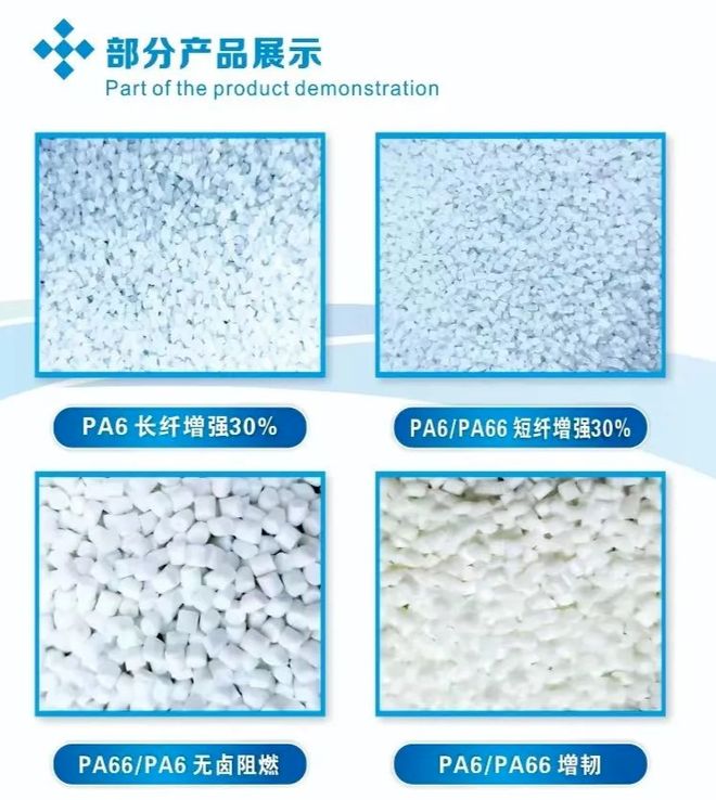 主营产品包括阻燃增强尼龙(PA6、PA66)、耐高温尼龙、高导热尼龙、高性能改性聚酯(PBT、PET)和聚苯硫醚(PPS)等五大系列。