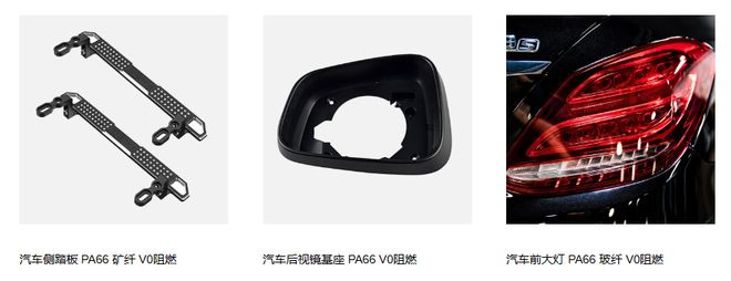 公司目前主要产品有改性PA6、PA66、PP、PPO、PBT、ABS、ASA、PC/ABS等,市场集中于汽车零部件的电子电器、线束和热管理系统等。