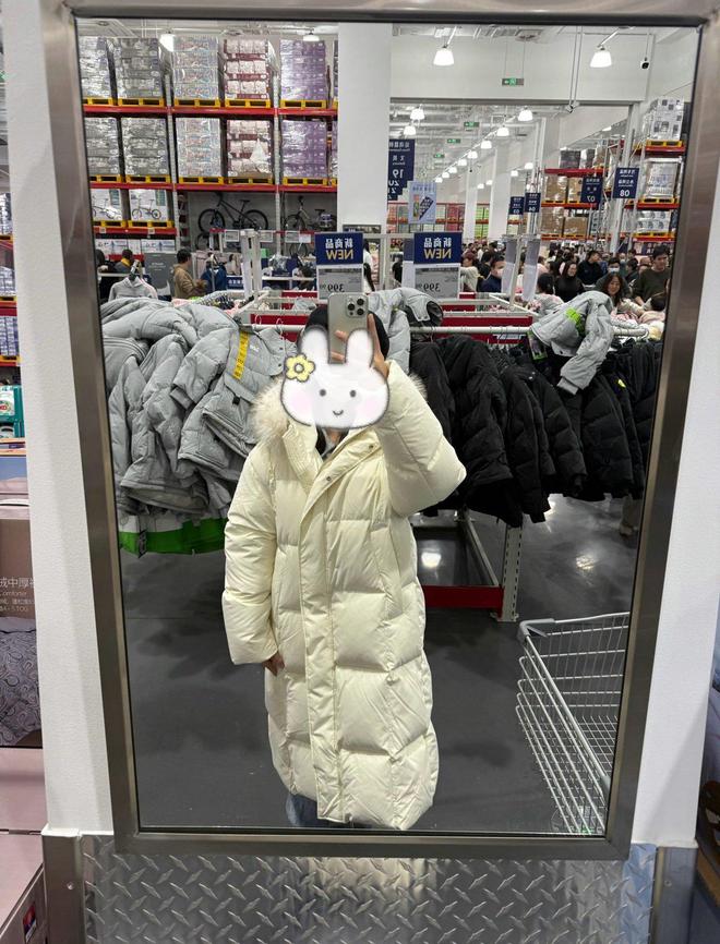开市客也不甘示弱,359元的短款羽绒服有180克充绒量,虽然对比山姆的400克少了点,但这个价格能买到这个配置,中产也是疯抢。