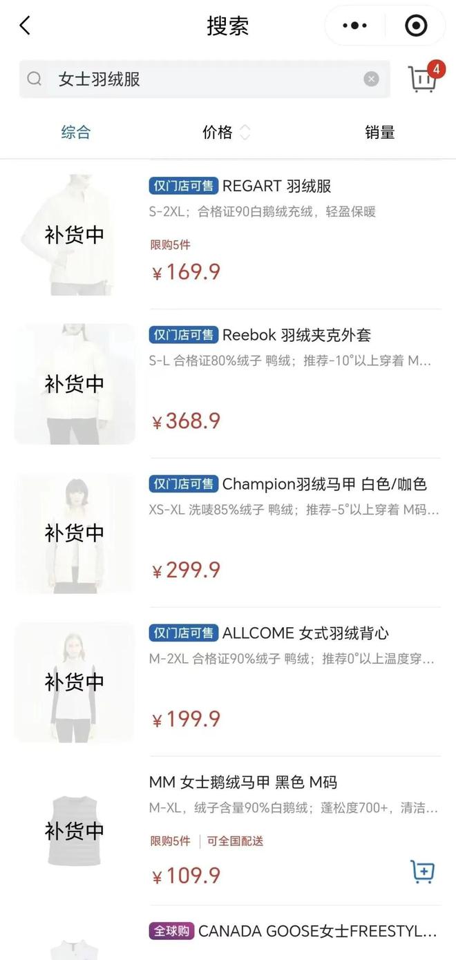 不止胖东来,大润发、联华超市这些普通连锁超市也跟上节奏,从149元到599元不等,而且很多充绒量都在100克以上,应付冬天足够了。