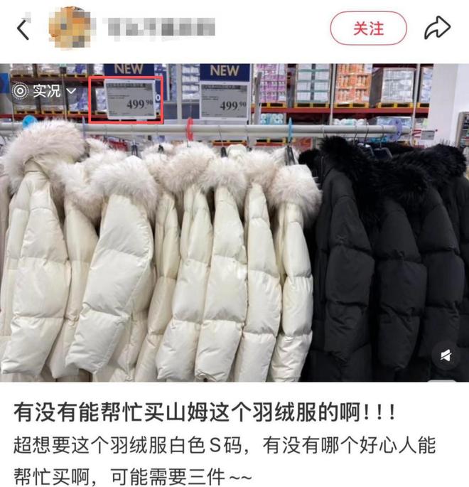 以前的中产去山姆会员定买牛排、烤鸡,现在直奔羽绒服货架,山姆499元的羽绒服爆款直接卖断货。